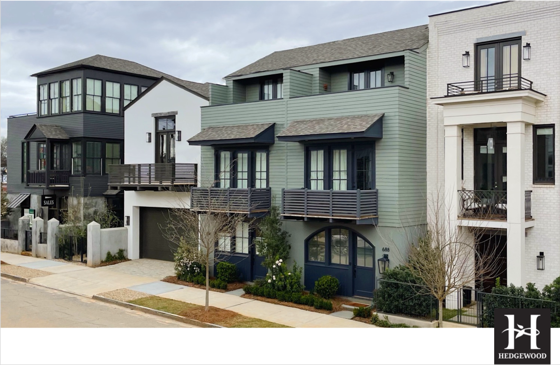 Closer view of the Phase 1 apartments and standalone homes. Avila/Hedgewood; designs, TSW/Brock Hudgins Architects; courtesy of Avondale Estates