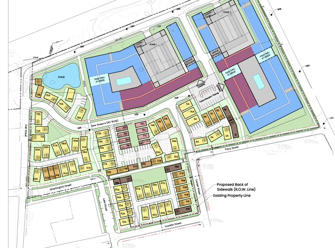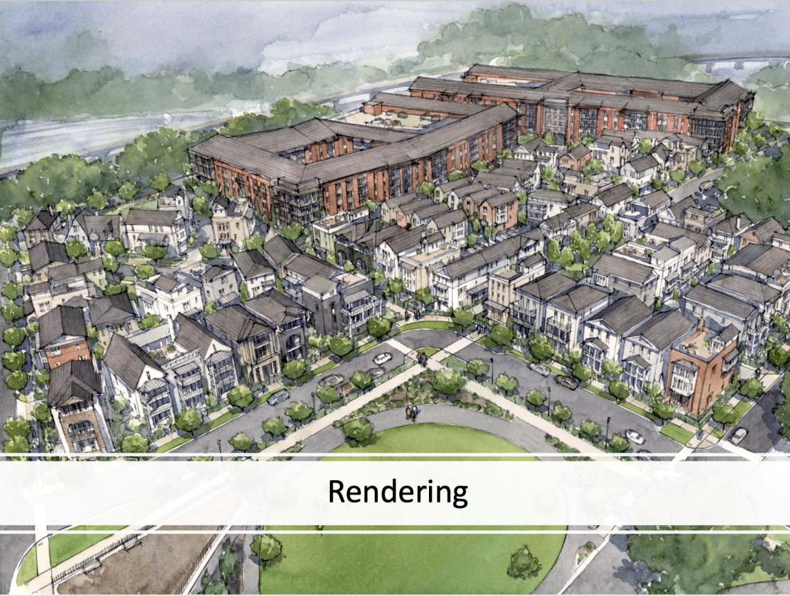 Conceptual drawings from 2022 showed a dense new residential district sprouting from the land with a mix of 602 apartments, townhomes, and live-work-play units across eight buildings. But ambitions for the site are even larger now.