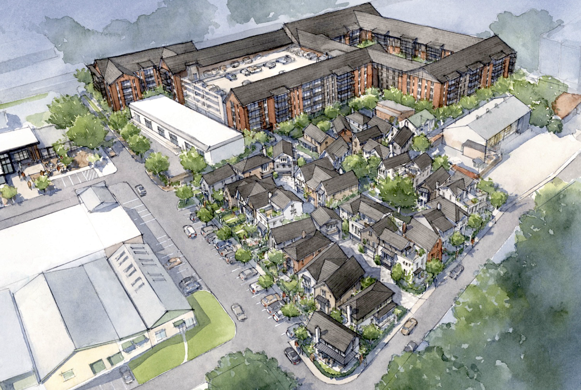 The Maple Street section, where 36 for-sale homes would join apartments. Avila/Hedgewood; designs, TSW/Brock Hudgins Architects; courtesy of Avondale Estates