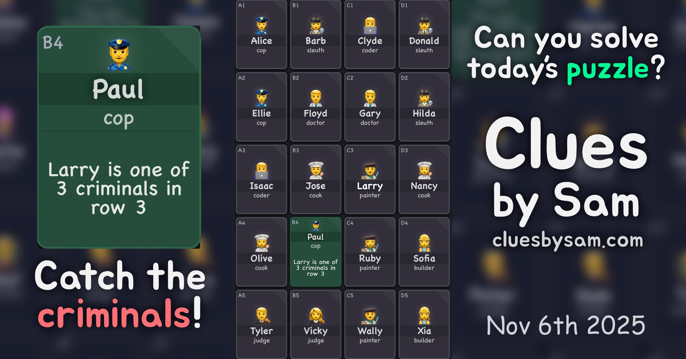 I solved the daily Clues by Sam (Nov 4th 2025) in 04:47