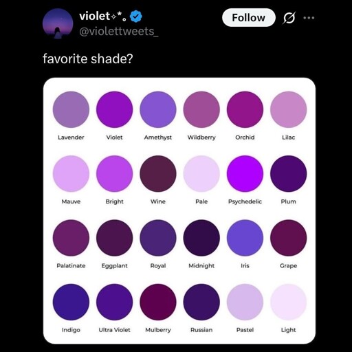 minus-squareklemptor@startrek.websitelinkfedilinkEnglisharrow-up19·edit-216 days agoAmethyst and iris. These are pretty much my signature colors. But purples are like doggos: I love them all. 💜 “Klem,” you may ask, “do you have a relevant eyeshadow palette in your collection?” Of course I do!: