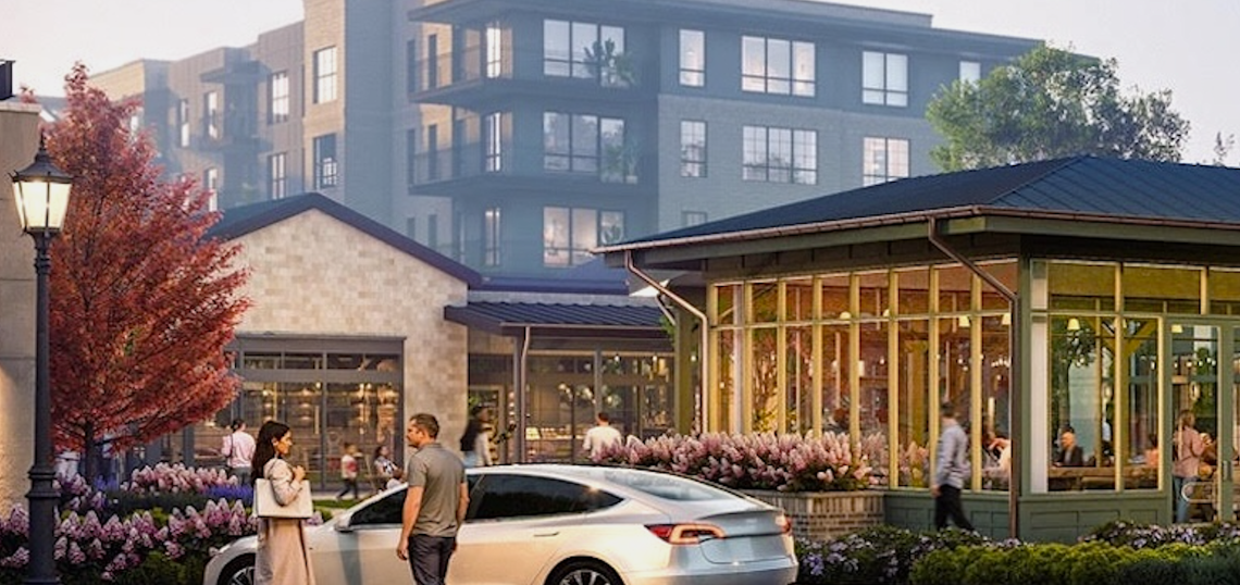 Overview of the reimagined Hill Street properties in question, as seen from over Roswell City Hall.City of Roswell/Hillrose Market; The Atlantic Companies; designs, ASD | SKY