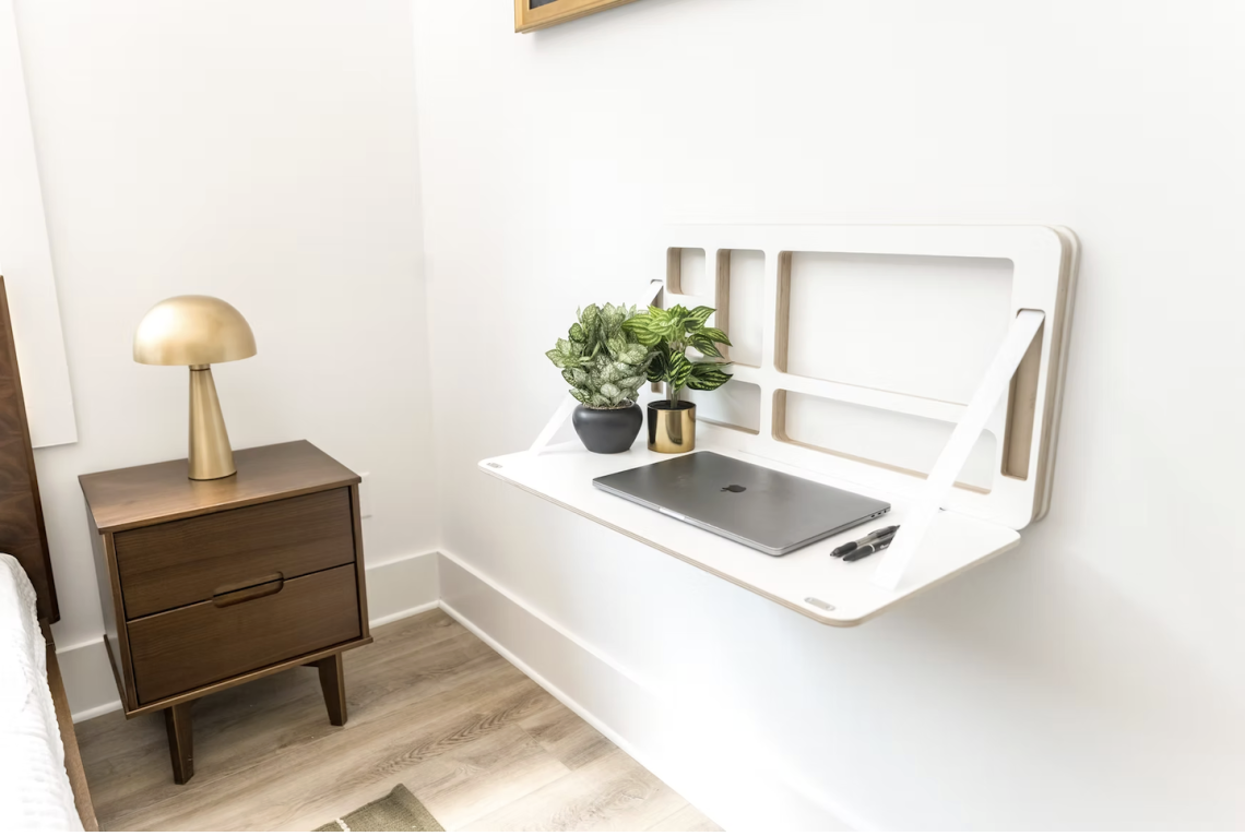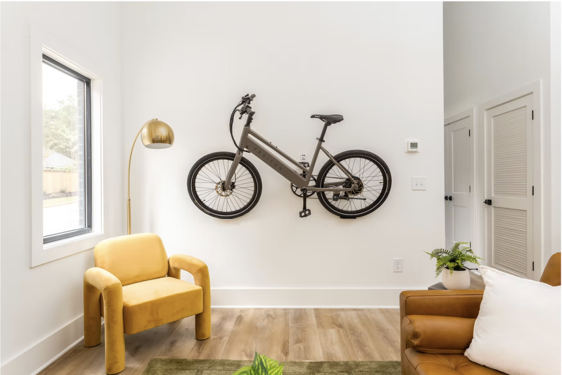 Interior designs of a model Standard unit (with mounted Edison bike) at The Gracewood. Photo by Junior Media; courtesy of Seven Real Estate Group