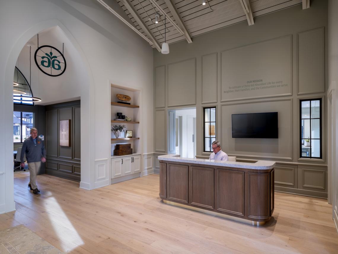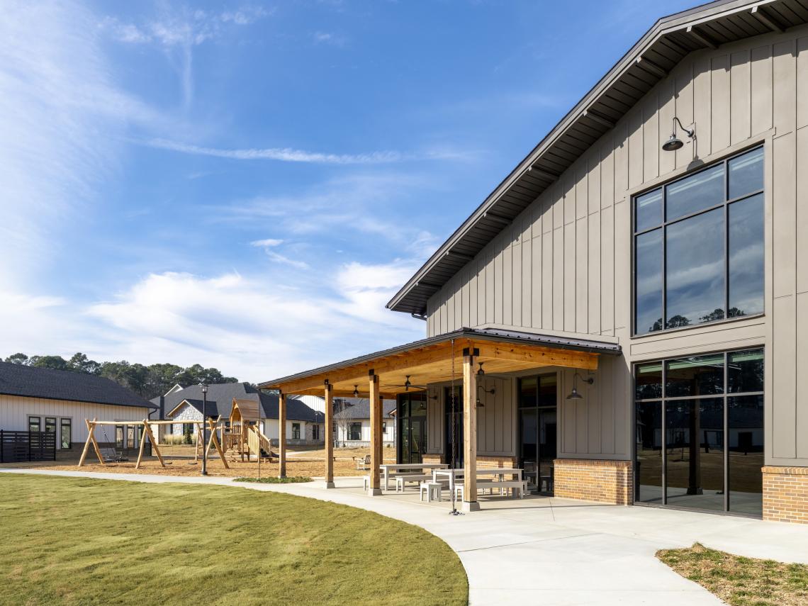 Courtesy of Cooper CarryDavid and Debbie Turner, parents of an adult daughter with Down Syndrome, founded Amber Grace as a faith-based nonprofit in 2020. They established the Berry College community as a means to address needs for post-secondary school programs and services for adults with IDD in a more communal, productive setting. “With Amber Grace, the end goal was to design an engaging and authentic built environment where human bonds are fostered and encouraged,” said Tim Fish, Cooper Carry principal, in a project announcement. “By emulating an interwoven neighborhood experience, the community empowers residents to take charge of their independence and live life abundantly.”Have a closer look around the Amber Grace project’s grounds and facilities in the gallery above.