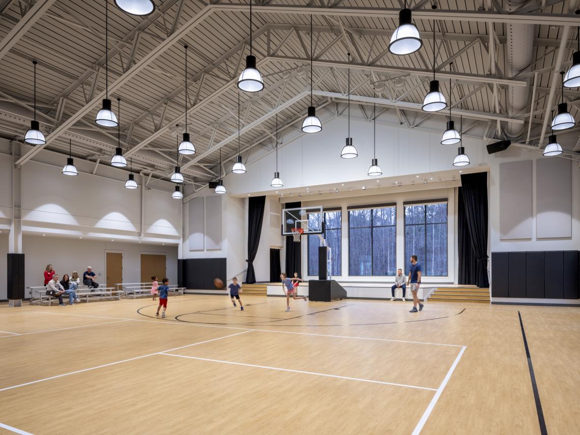 Courtesy of Cooper CarryThe goal of the project—as designed by Cooper Carry, based on Reach Architects’ preliminary concepts—is to lend residents a supportive environment that provides life and vocation skills, boosts independence, and creates a sense of belonging.Residences with shared courtyards are positioned around a village green social hub, and pathways link all parts of Amber Grace like city streets. A community center acts as the project anchor, with a dining hall and spaces for classes. Other amenities include a playground, fitness studio, gymnasium, and onsite cosmetology and healthcare studios, according to project architects. Private rooms in each home open to a shared living space to create a “family-style atmosphere” that “exudes a true neighborly environment” rather than an institutional feel, according to Cooper Carry reps. The development team also included project manager Gleeds America and Choate Construction.