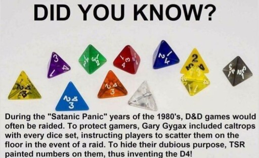 Nah dude, this is legit, I lived through the tail end of the satanic panic years, those FBI raids were no joke. We used to scatter a layer of d4s along the stairs leading the basement, right before the tripwire that releases a full paint can on a string. Every player was issued a smoke bomb before the start of the game so we could make a clean getaway while the officers were distracted.