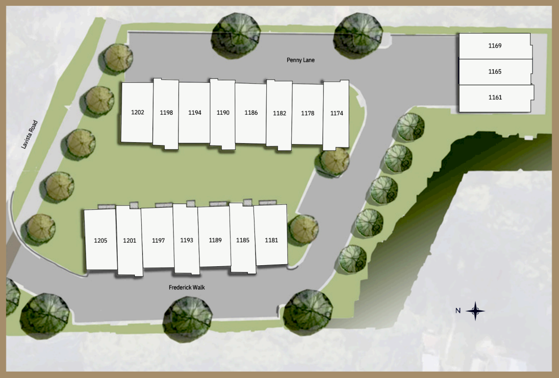 Site plan for the 18-home project along LaVista Road. Compass