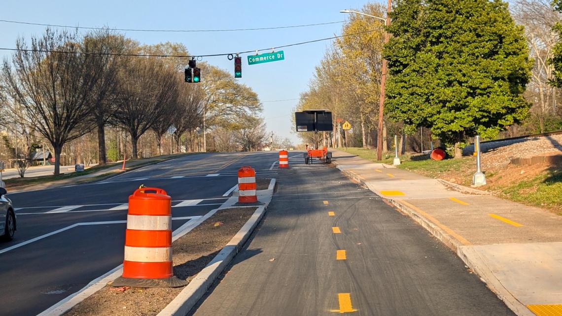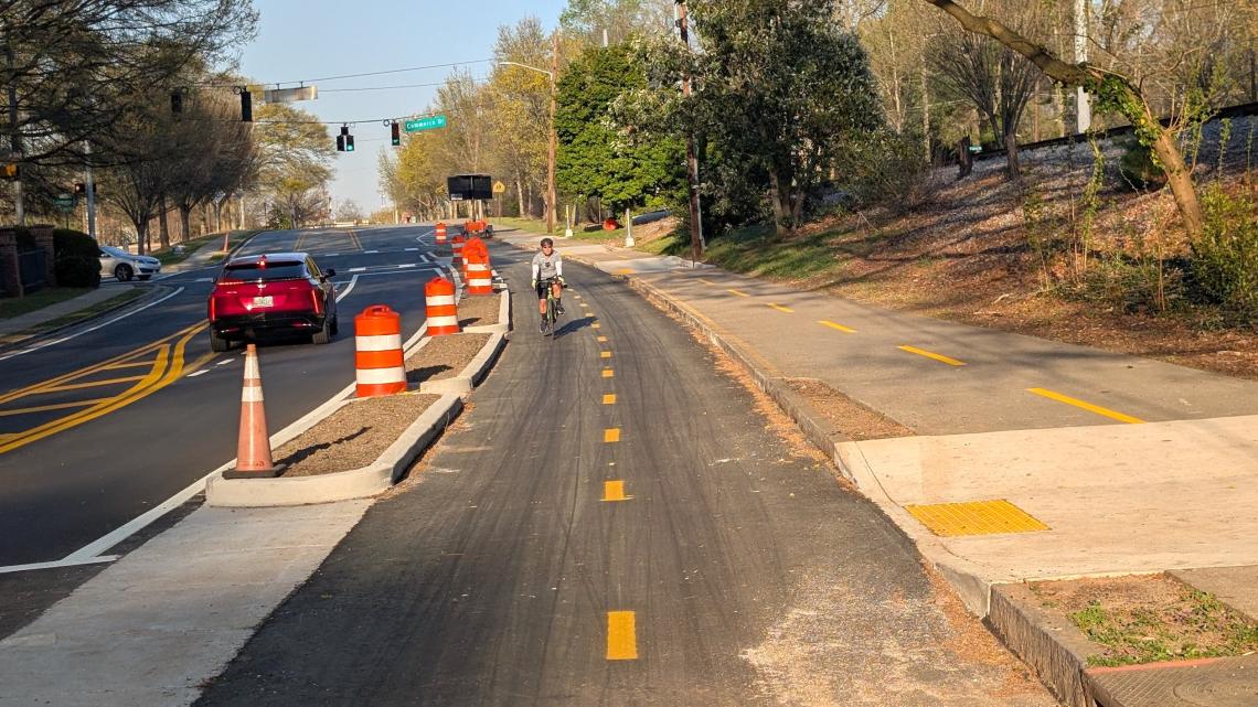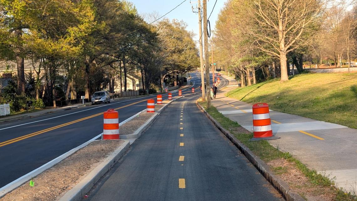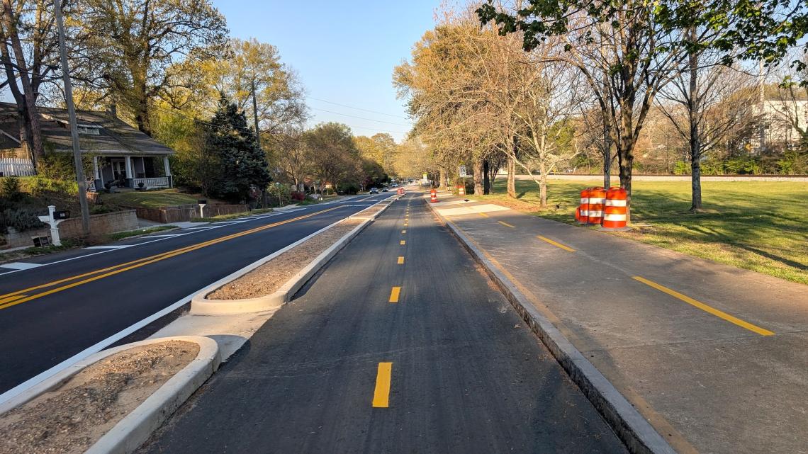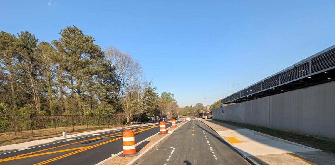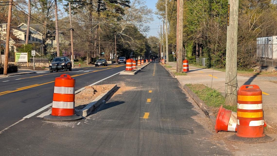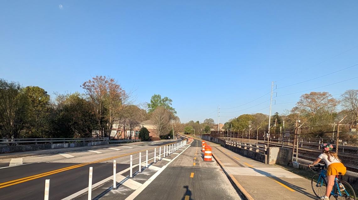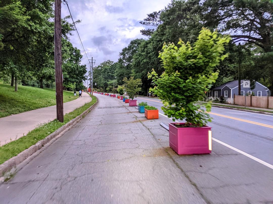 New protected bike lanes (with plantings in medians TBD) next to the PATH Foundation’s trail between Stone Mountain and downtown Atlanta. Josh Green/Urbanize Atlanta