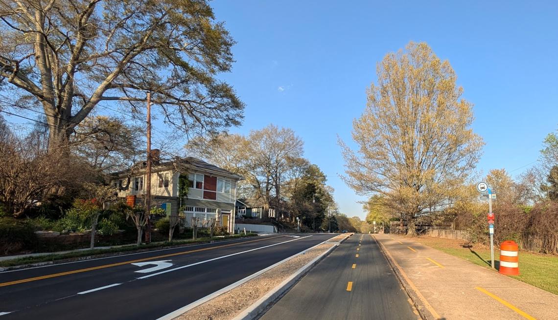 Heading east on the new cycle track, toward Downtown Decatur. Josh Green/Urbanize Atlanta