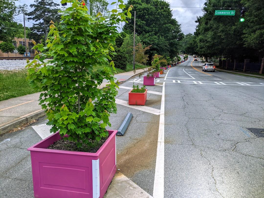 Where the West Howard Avenue project ends at Commerce Drive, near Decatur High School. Josh Green/Urbanize AtlantaSubtitleRest In Peace, planter boxesNeighborhoodDecaturBackground ImageImage