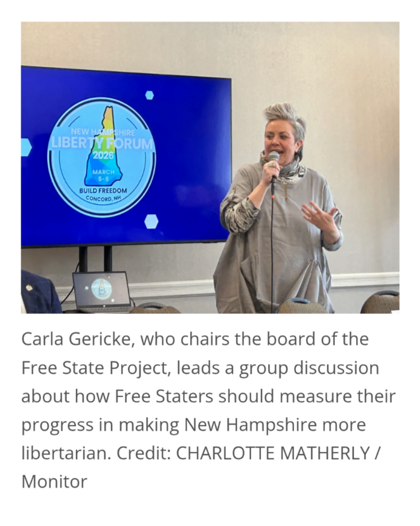 This is not an article about trans people. The article is about a movement of Libertarians in New Hampshire. Here is the caption of Carla’s photo. She is not trans. She is a woman.